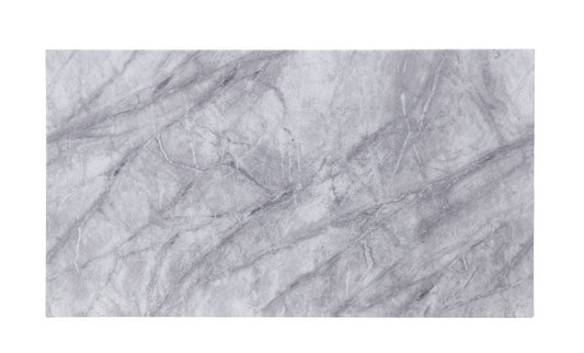 Satinka - Coffee Table - Light Gray Printed Faux Marble & Mirrored Silver Finish