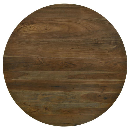 Yaritza - Round Accent Table With Triangle Wire Base - Natural and Gunmetal
