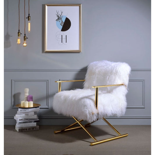 Bagley II - Bench - White Faux Fur & Gold - 21"