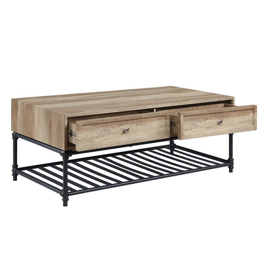 Brantley - Coffee Table - Oak & Sandy Black Finish - Metal - 18"