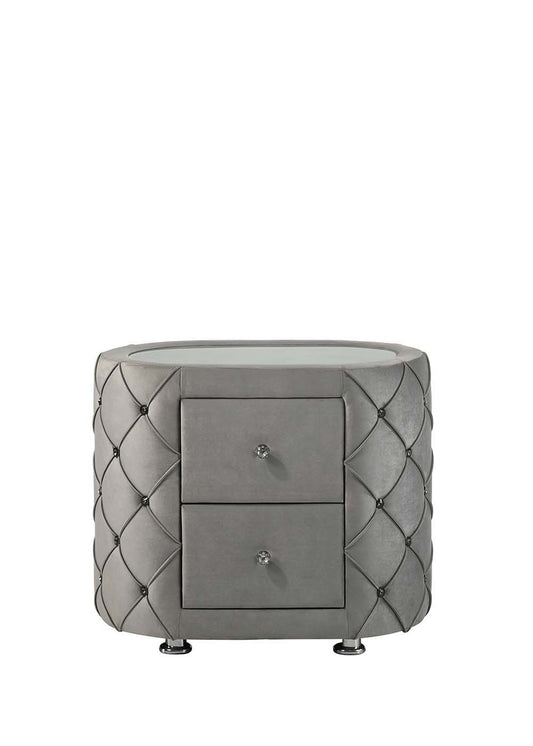 Varian II - Nightstand - Black Velvet & Black & Sliver Finish
