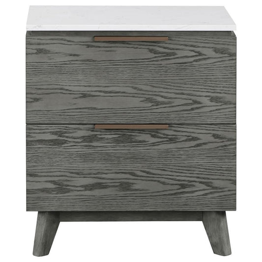 Nathan - 2-Drawer Nightstand With USB Port - White Marble and Grey