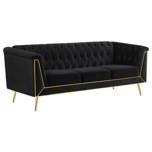 Holly - 3-Piece Tuxedo Arm Tufted Back Living Room Set - Black