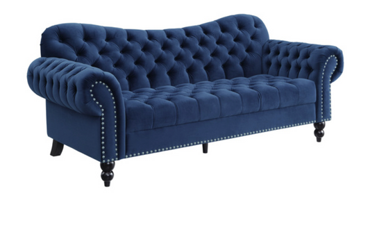 9330BU Rosalie Collection Blue Velvet Sofa & Loveseat Set 2 Piece Set