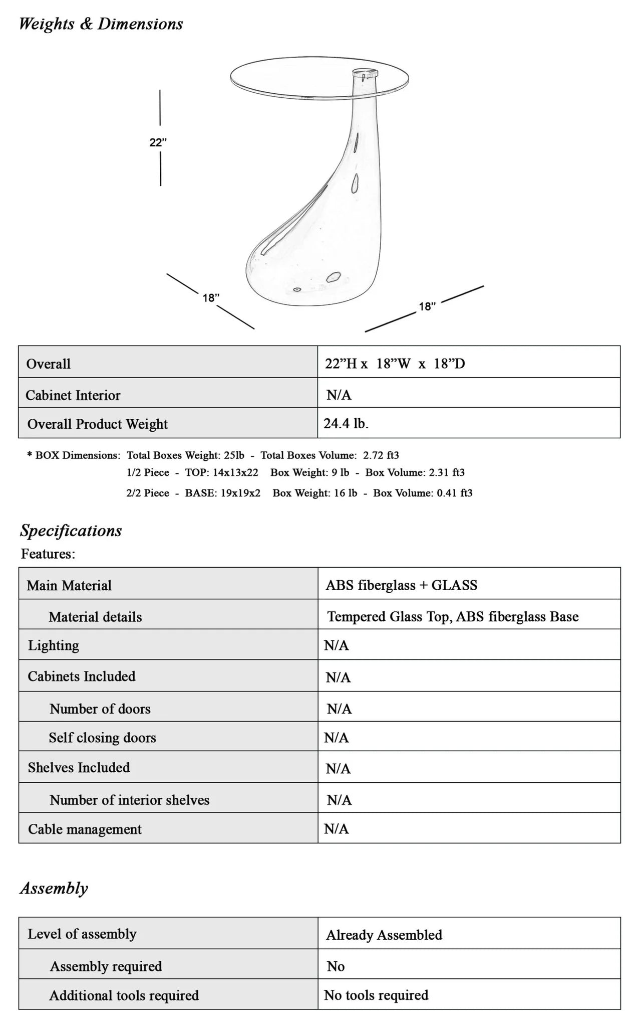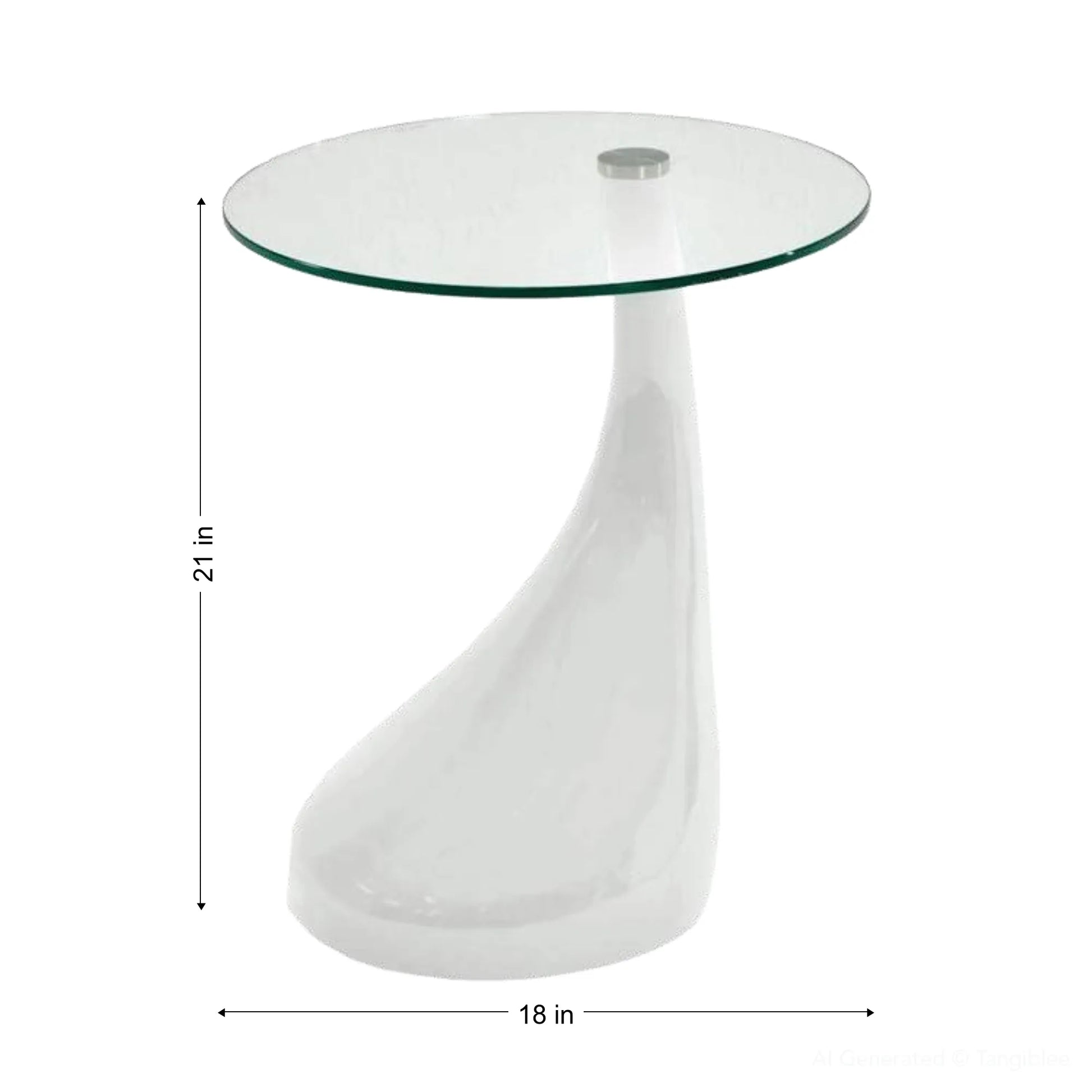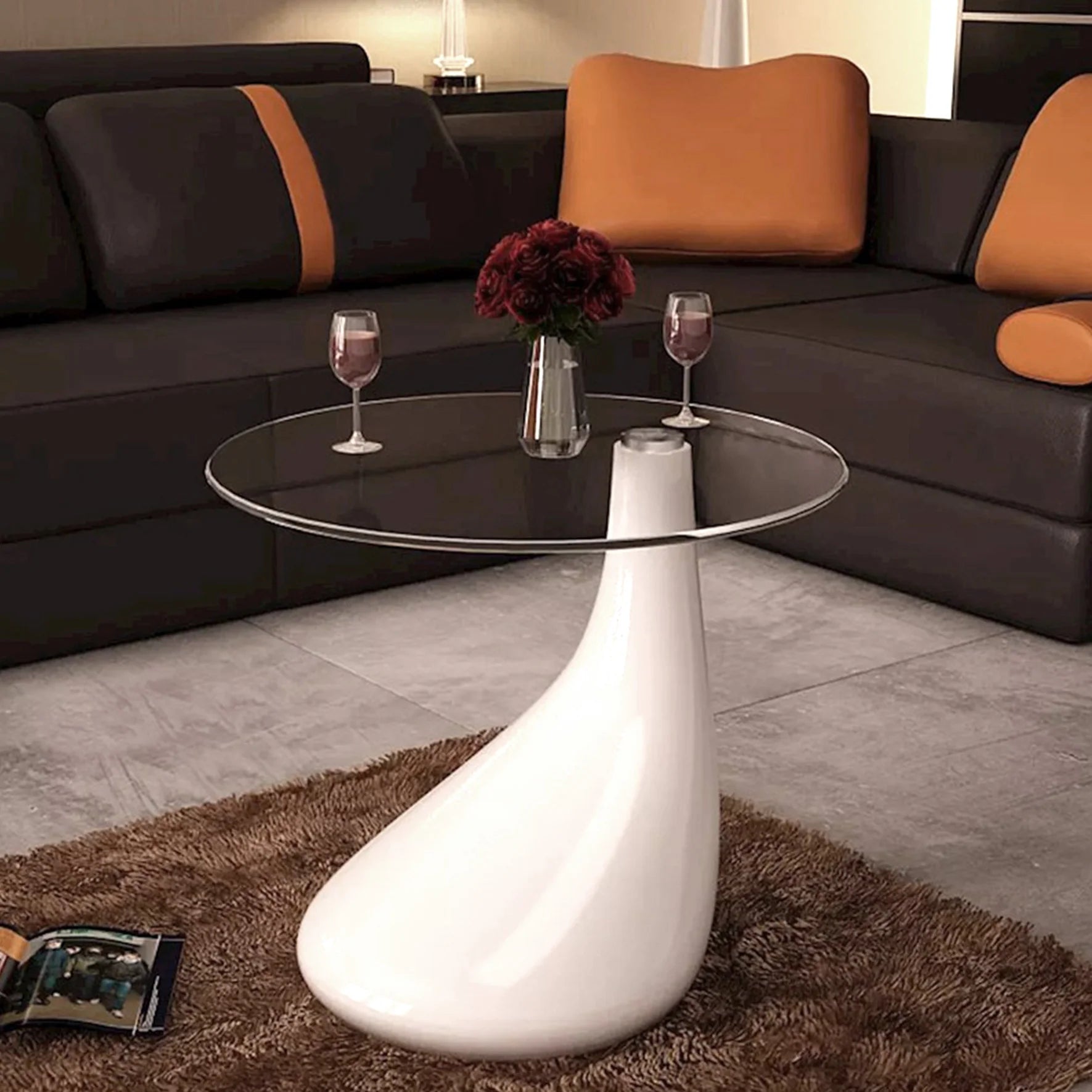 This coffee table showcases gorgeous design that will enhance the existing decor in your living space. The unique water-drop shaped base in high-gloss white finish gives the table a chic look.The round glass end table coordinates with a variety of upholstery sizes and configurations, ideal for use with a sectional sofa.